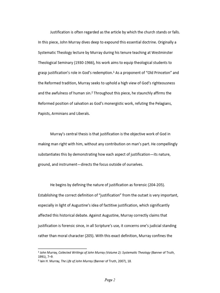 John Murray Justification Analytical Reflection | PDF | Justification ...