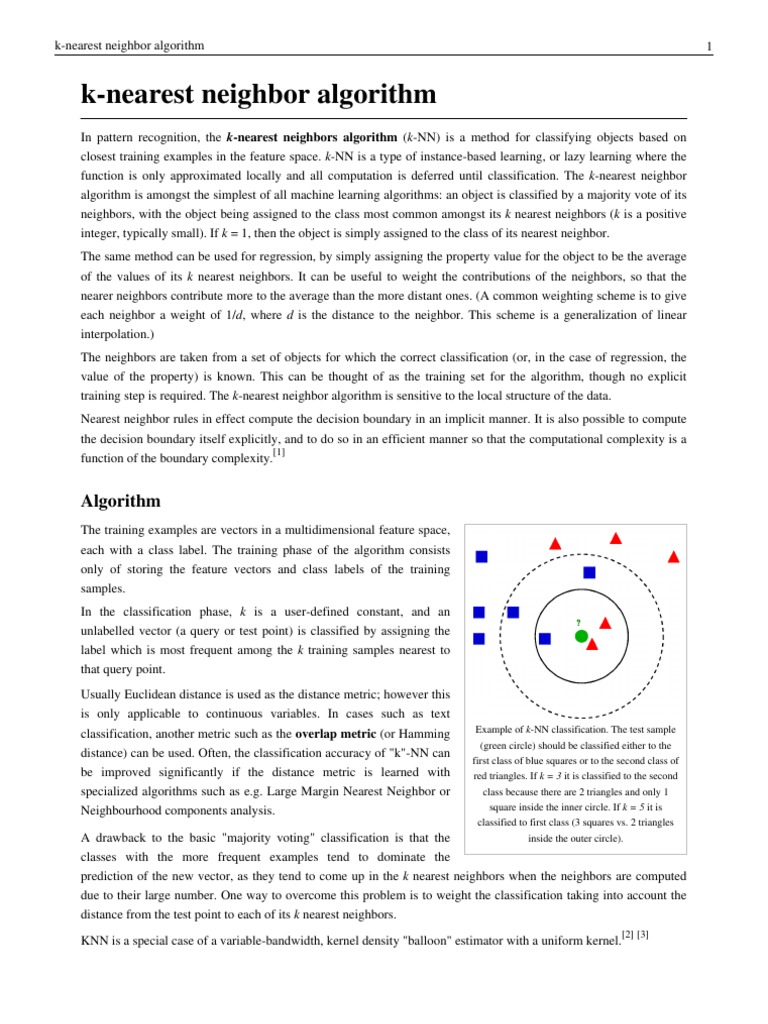 Wikipedia K Nearest Neighbor Algorithm | PDF | Formalism (Deductive ...