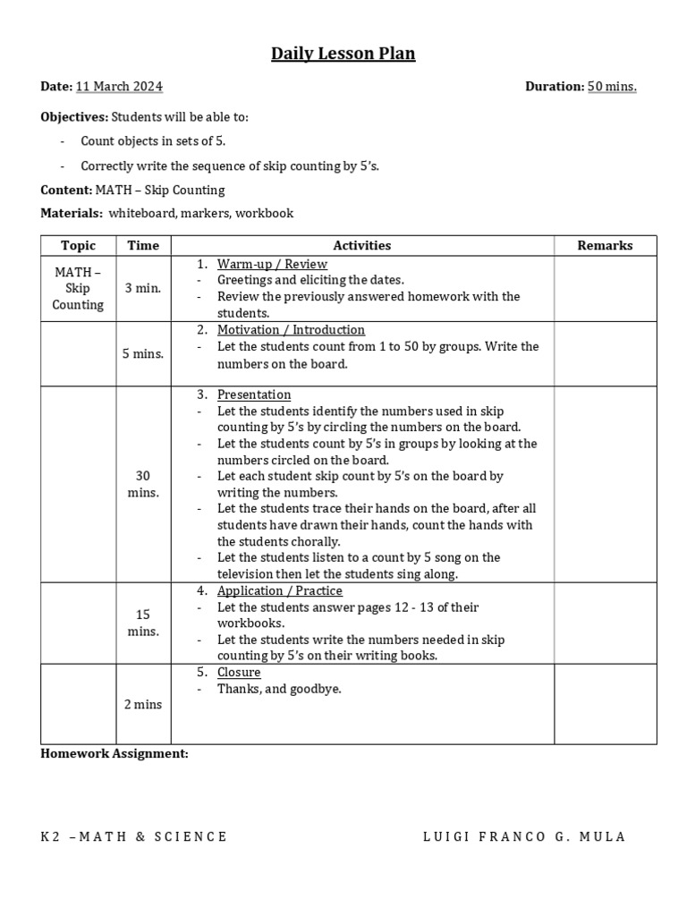 Lesson 1 & 2 - MATH (K2) | PDF | Teachers | Learning