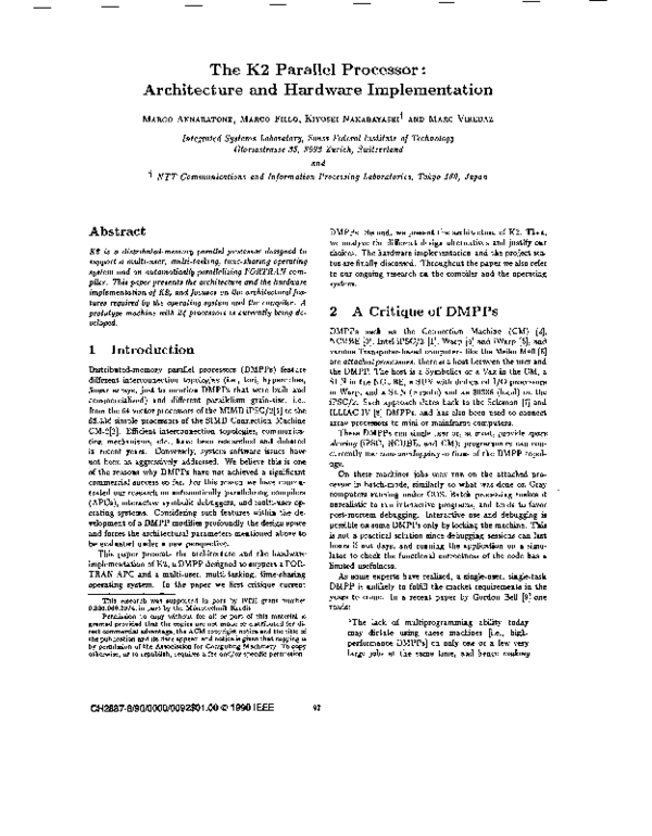(PDF) The K2 parallel processor: architecture and hardware implementation
