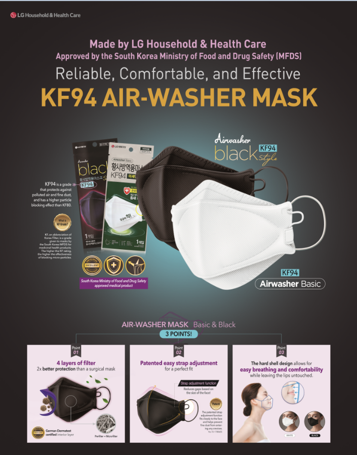 LG Airwasher Adjustable KF94 Korean Face Mask Made in Korea Adults ...