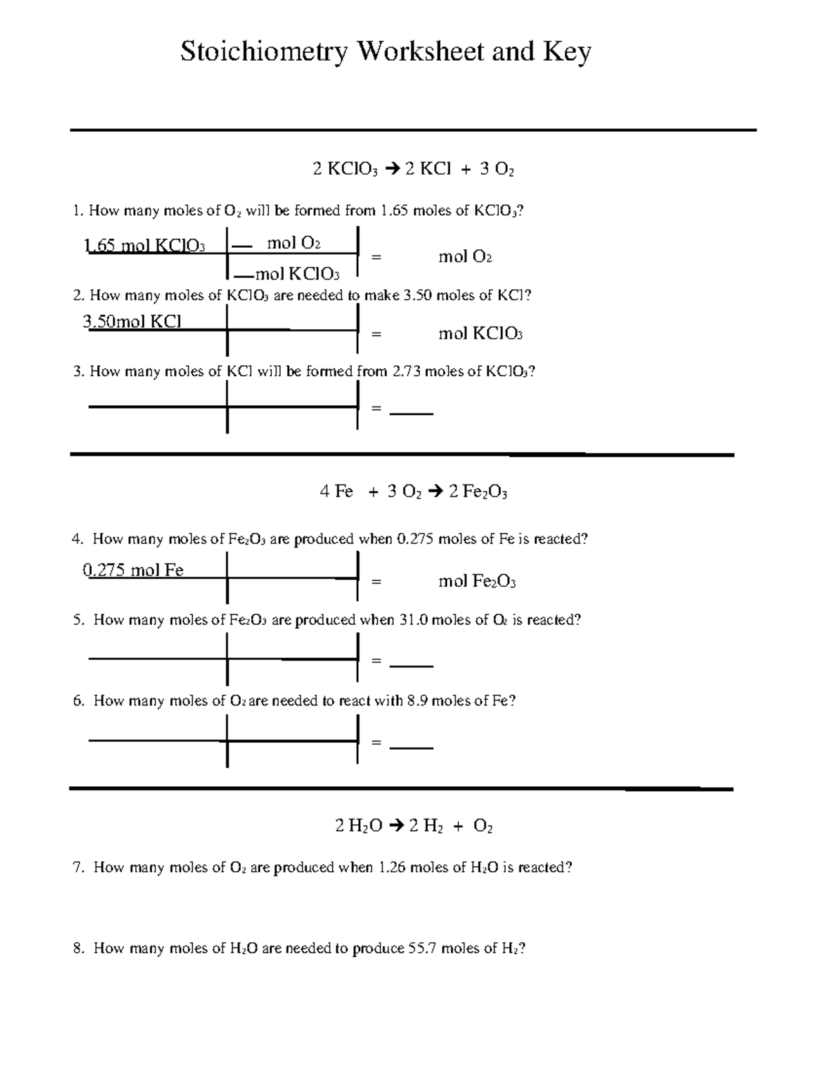 Stoichiometry Worksheet and Key: 2 Kclo 2 KCL + 3 O | PDF | Mole ...