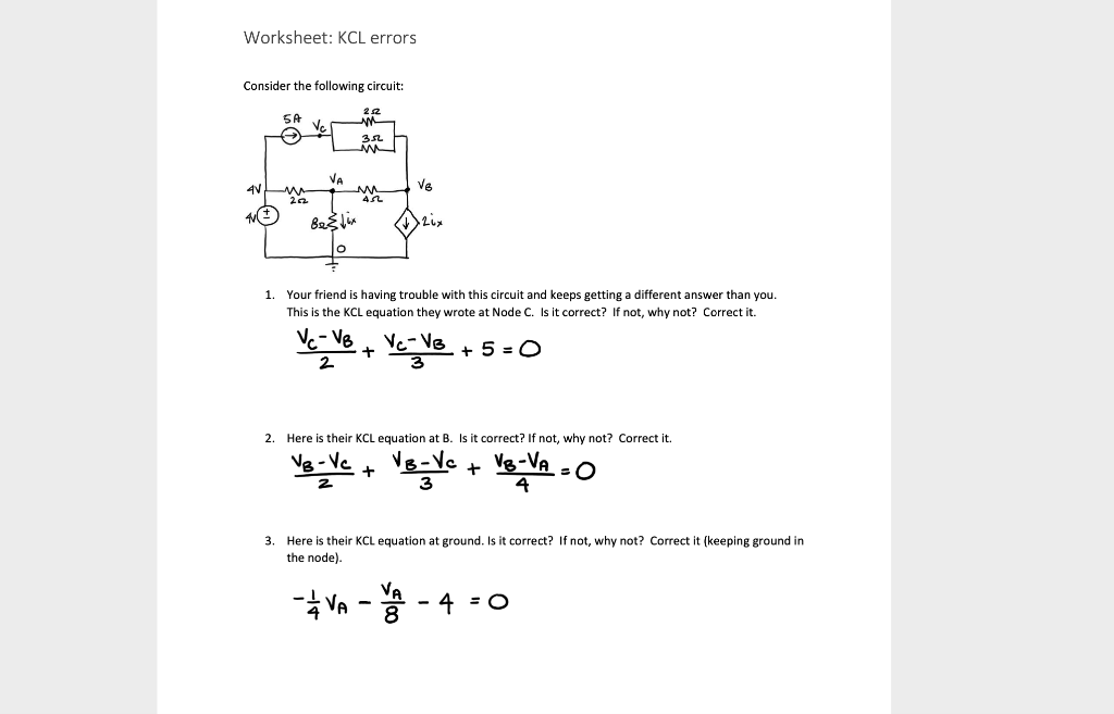 Solved Worksheet: KCL errors Consider the following circuit: | Chegg.com
