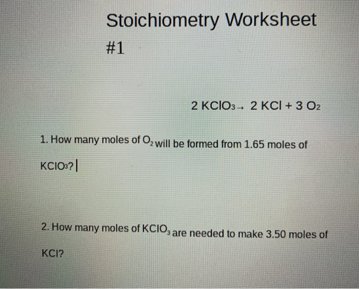 Solved Stoichiometry Worksheet #1 2 KClO3+ 2 KCl + 3 O2 1. | Chegg.com