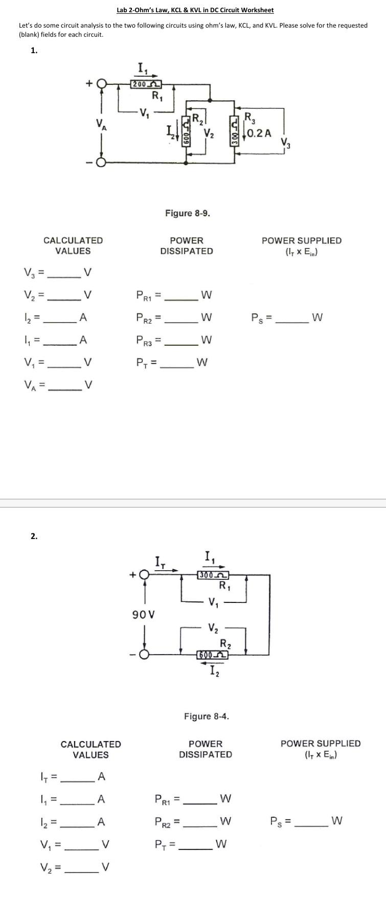 Solved Lab 2-Ohm's Law, KCL & KVL in DC Circuit Worksheet | Chegg.com