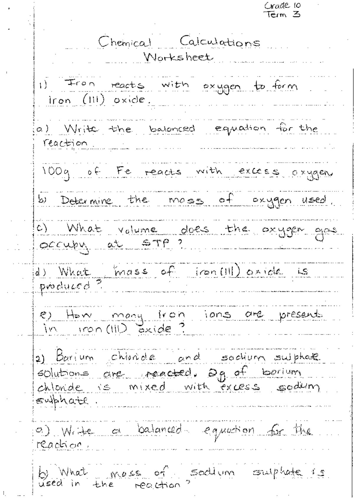 7.1- Chemical Calculations Worksheet for Crade 10 Term 5 - Studocu