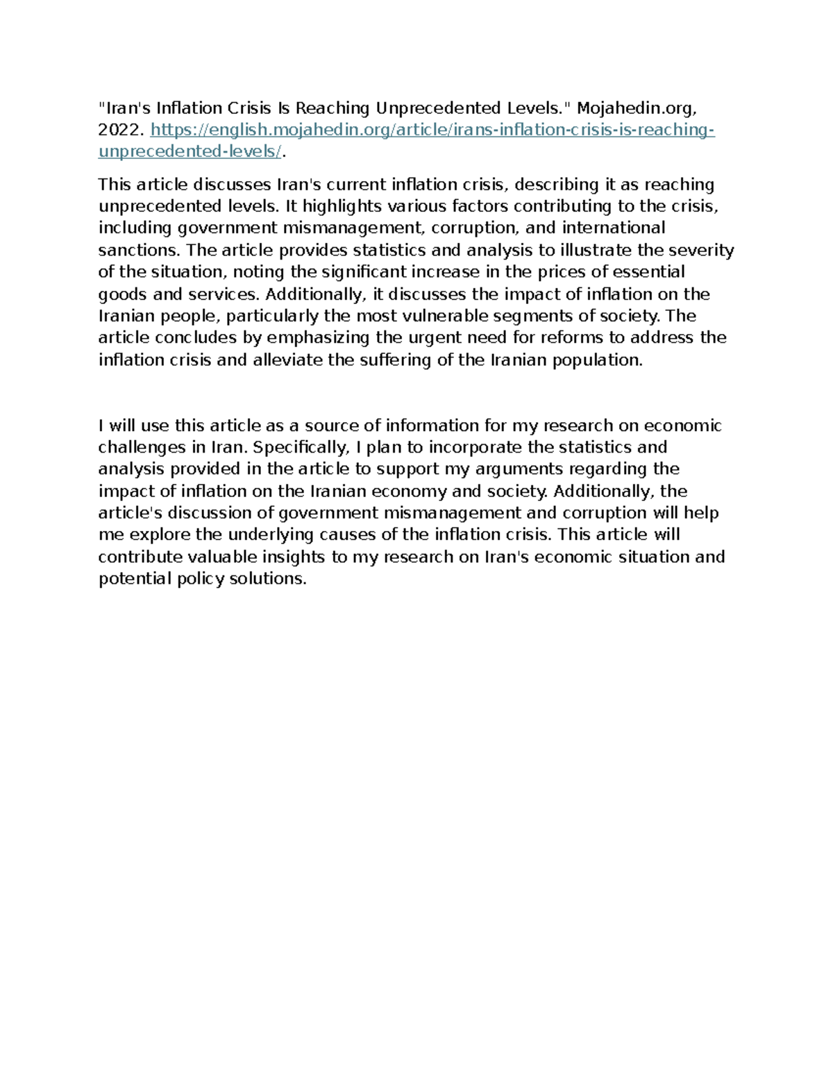 Article #4 - bbbbbbbbbbbbbbbbbbbbbbbbbbbbbbbbbbbbbb - "Iran's Inflation ...