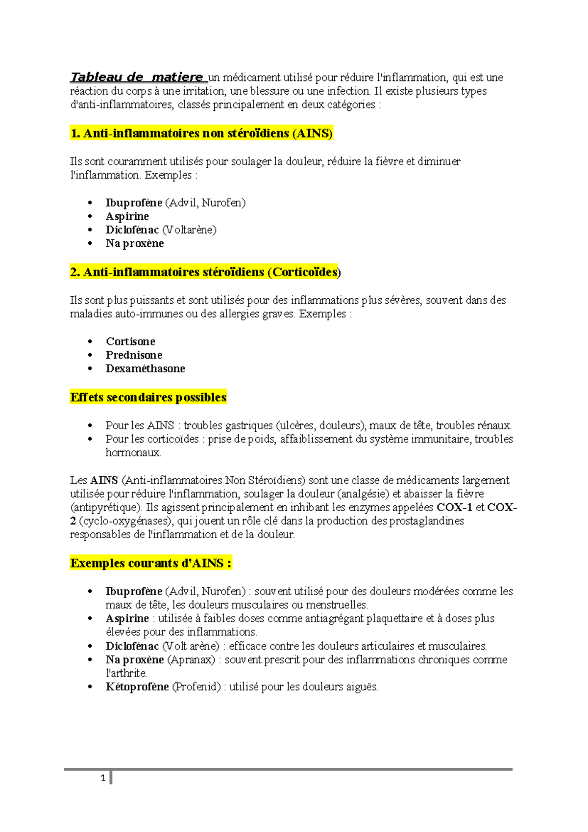 Anti inflamatoire - bbbbbbbbbbbbbbbbbbbbbbbbbbbbbbbbbbbbbb - Tableau de ...