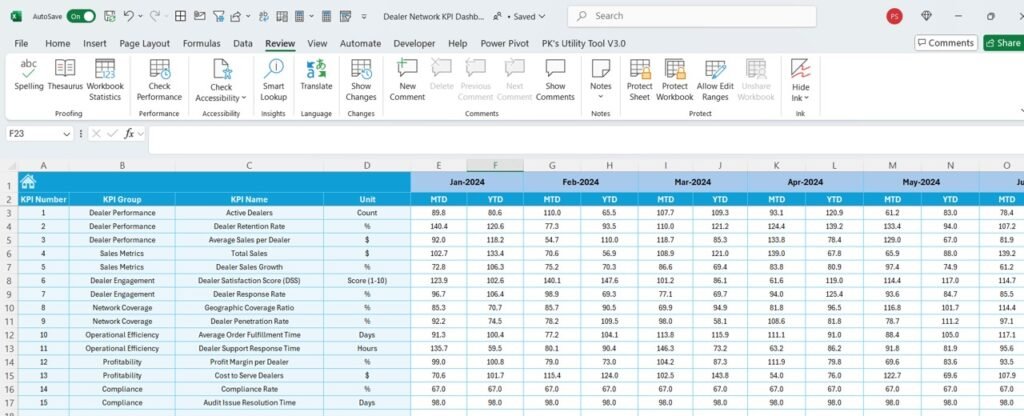 Dealer Network KPI Dashboard in Excel - PK: An Excel Expert