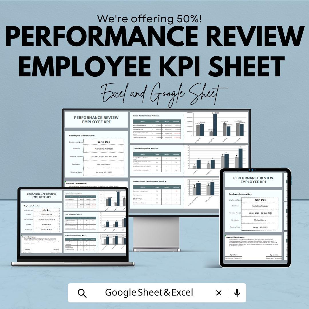 Performance Review Employee KPI Sheet | KPI Dashboard | Staff ...