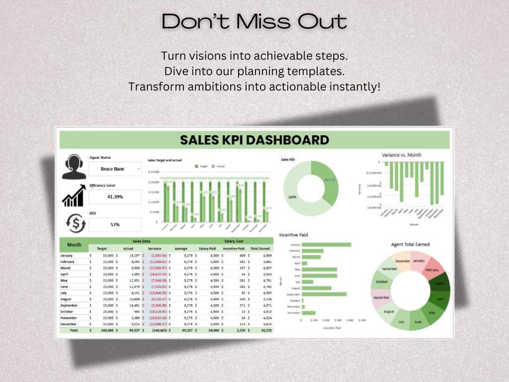 Sales Performance KPI Tracker Template | Track Sales Metrics & Goals ...