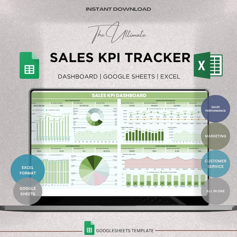KPI Dashboard, KPI Tracker Google Sheets, Key Performace Indicators ...