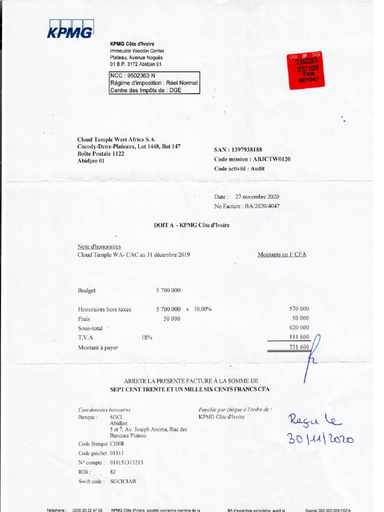 Facture KPMG Cac 2019 | PDF