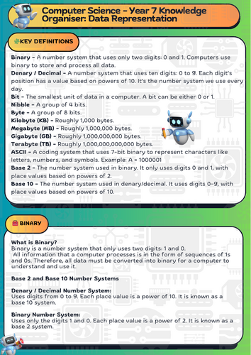 KS3 Computer Science: Data Representation - Year 7 by ROBBOT RESOURCES