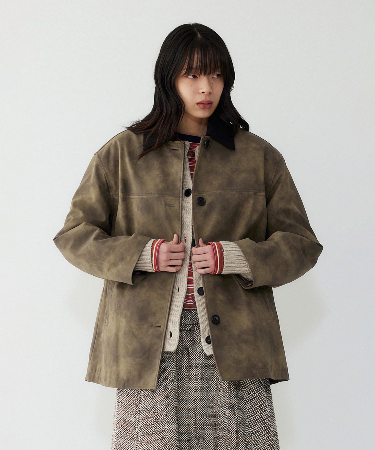MUSINSA | STUDIO TOMBOY Kara Color Block Synthetic Suede Jumper_Khaki ...