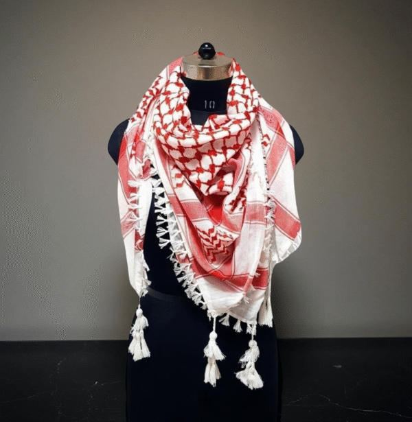 Traditional Palestinian Keffiyeh (Red & White Pattern) – Hooriya Creation