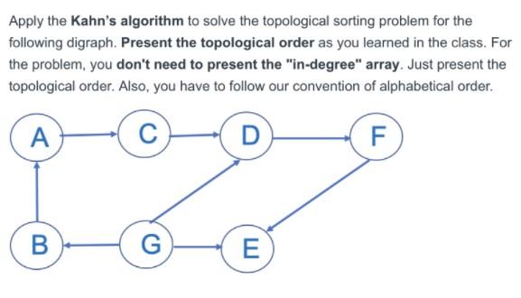 Solved Apply the Kahn's algorithm to solve the topological | Chegg.com