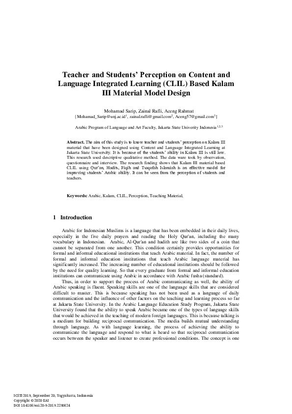 (PDF) Teacher and Students’ Perception on Content and Language ...
