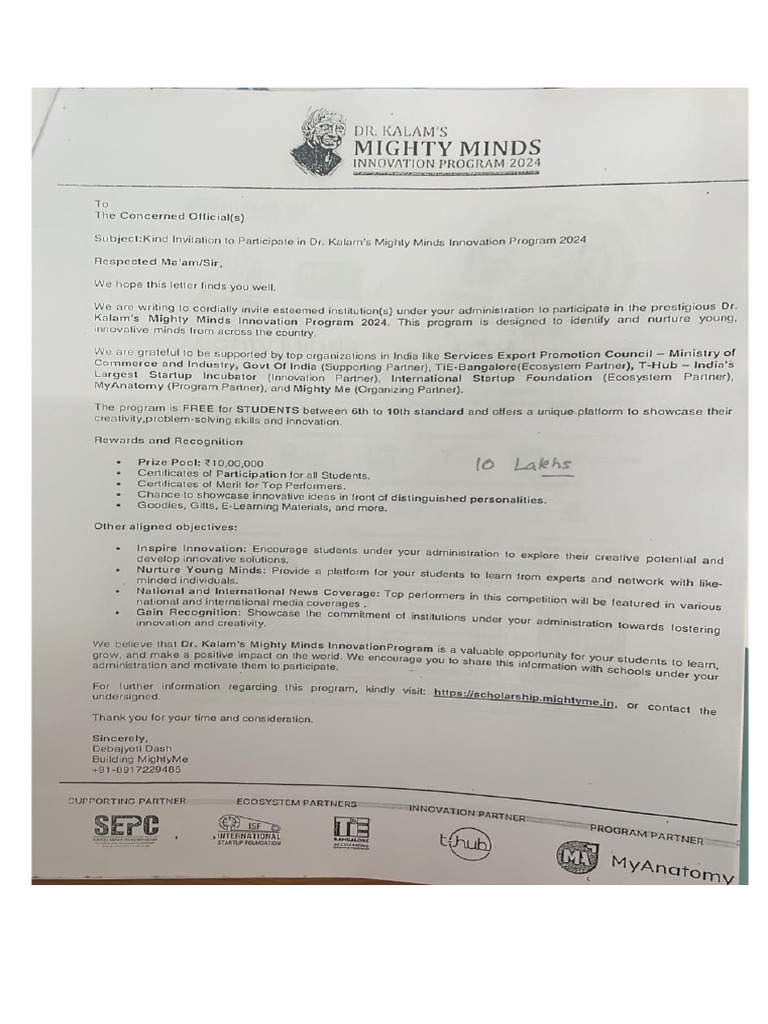 DR Kalam Mighty Minds Innovation Program Circular | PDF