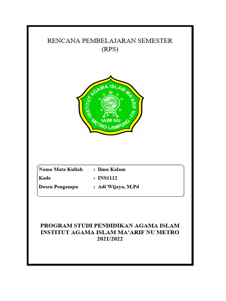 RPS Ilmu Kalam Program Studi PAI | PDF
