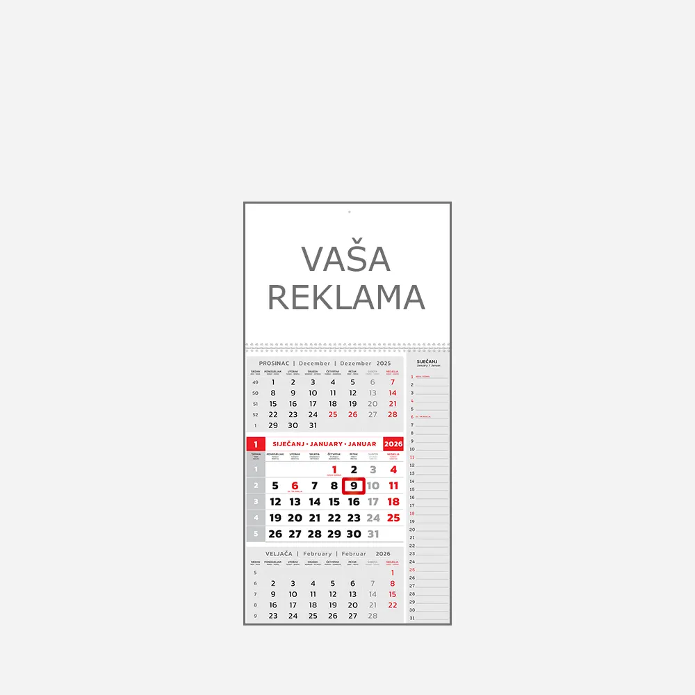 Tromjesečni kalendar Note mali 2026 - kalendari.com.hr