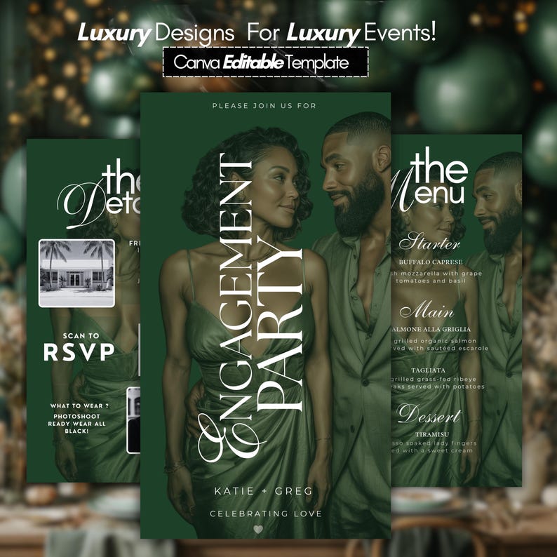 Modern Engagement Invitation Template Digital Download, Green Luxury ...