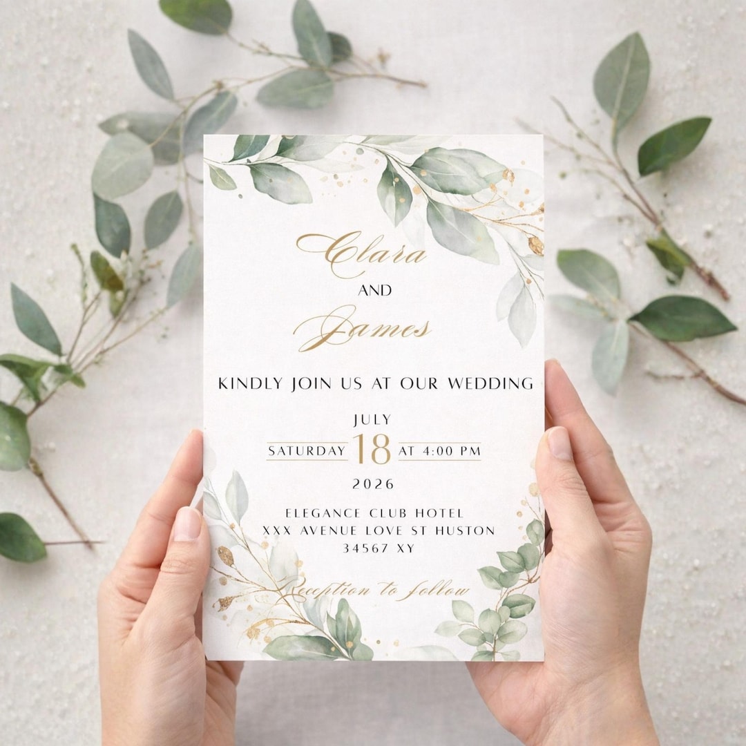 Wedding Invitation Template Canva | Sage Green Eucalyptus Invite ...