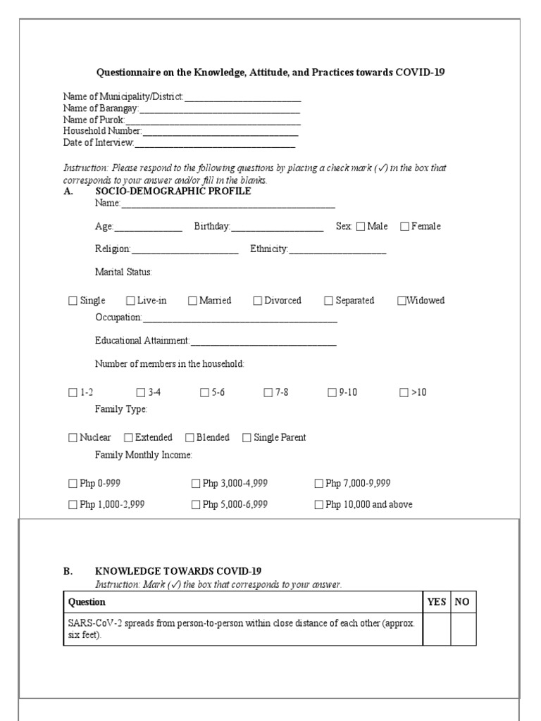 Questionnaire On The Knowledge, Attitude, and Practices Towards COVID ...