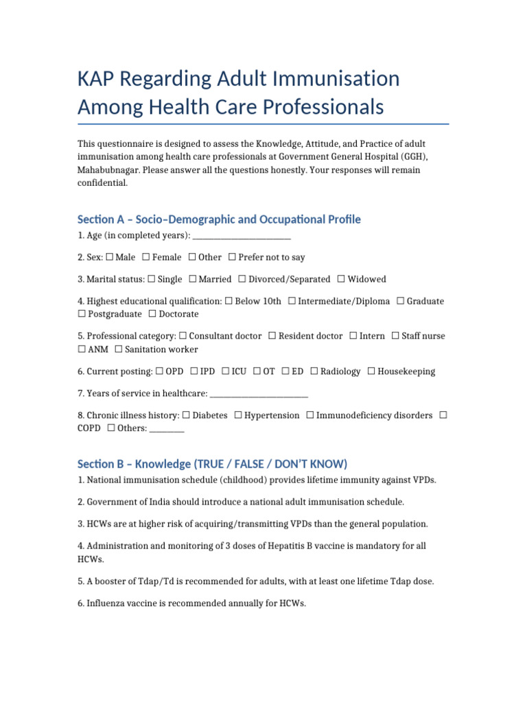 Adult Immunisation KAP Survey for HCWs | PDF | Vaccines | Vaccination