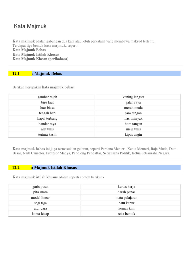 Pengertian dan Contoh Kata Majmuk | PDF
