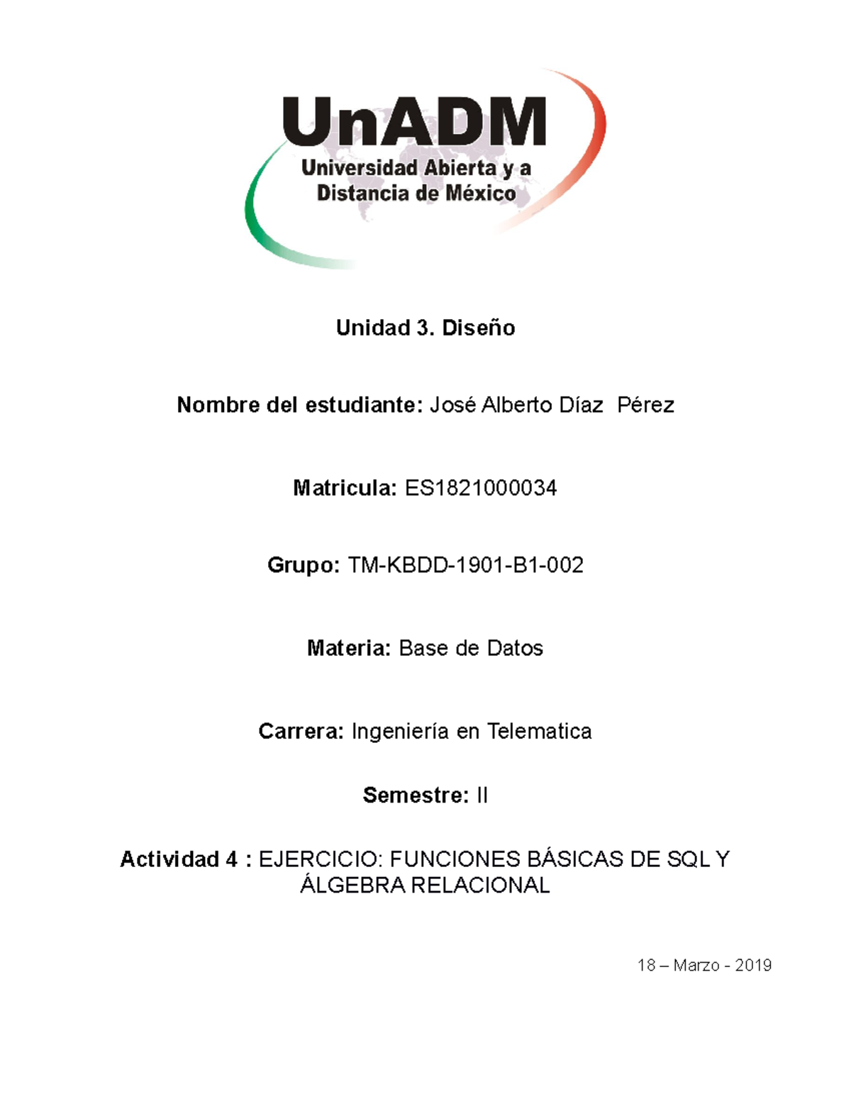 KBDD U3 A4 JODP - practica base datos - Unidad 3. Diseño Nombre del ...