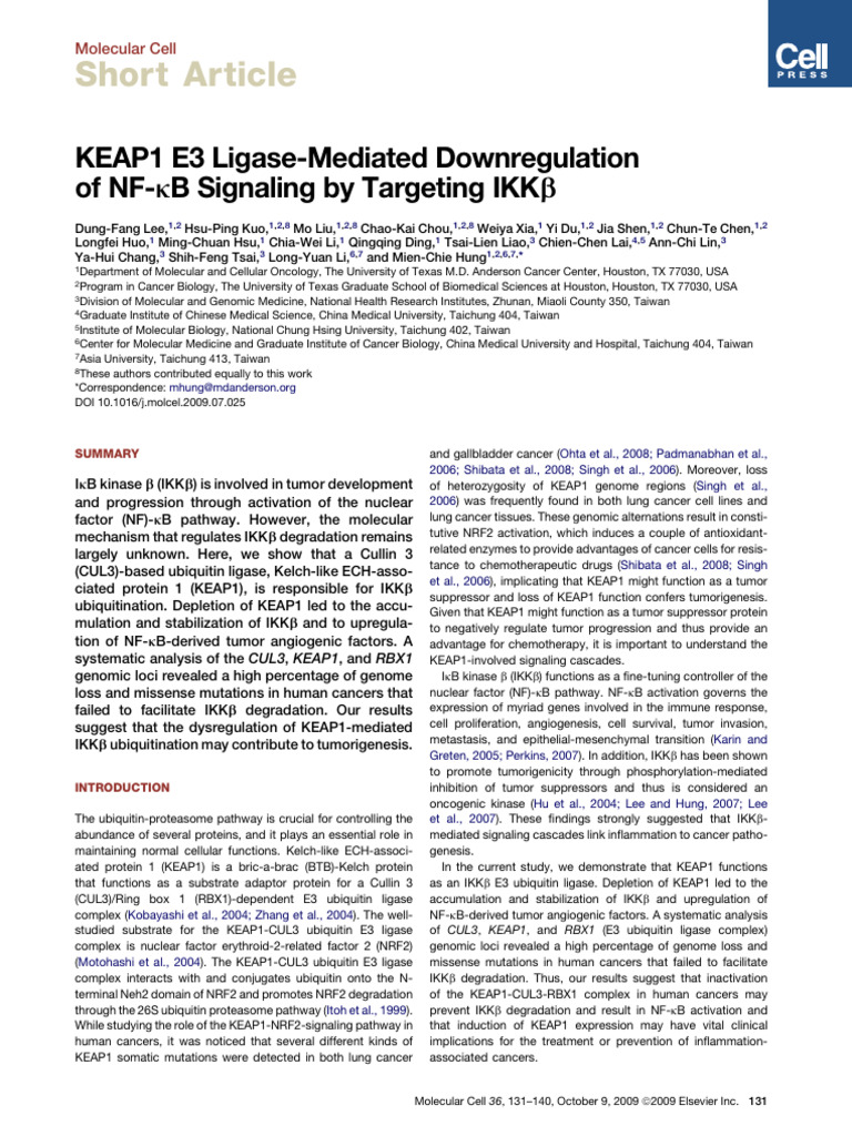 KEAP1 E3 Ligase-Mediated Downregulation of NF-κB Signaling by Targeting ...