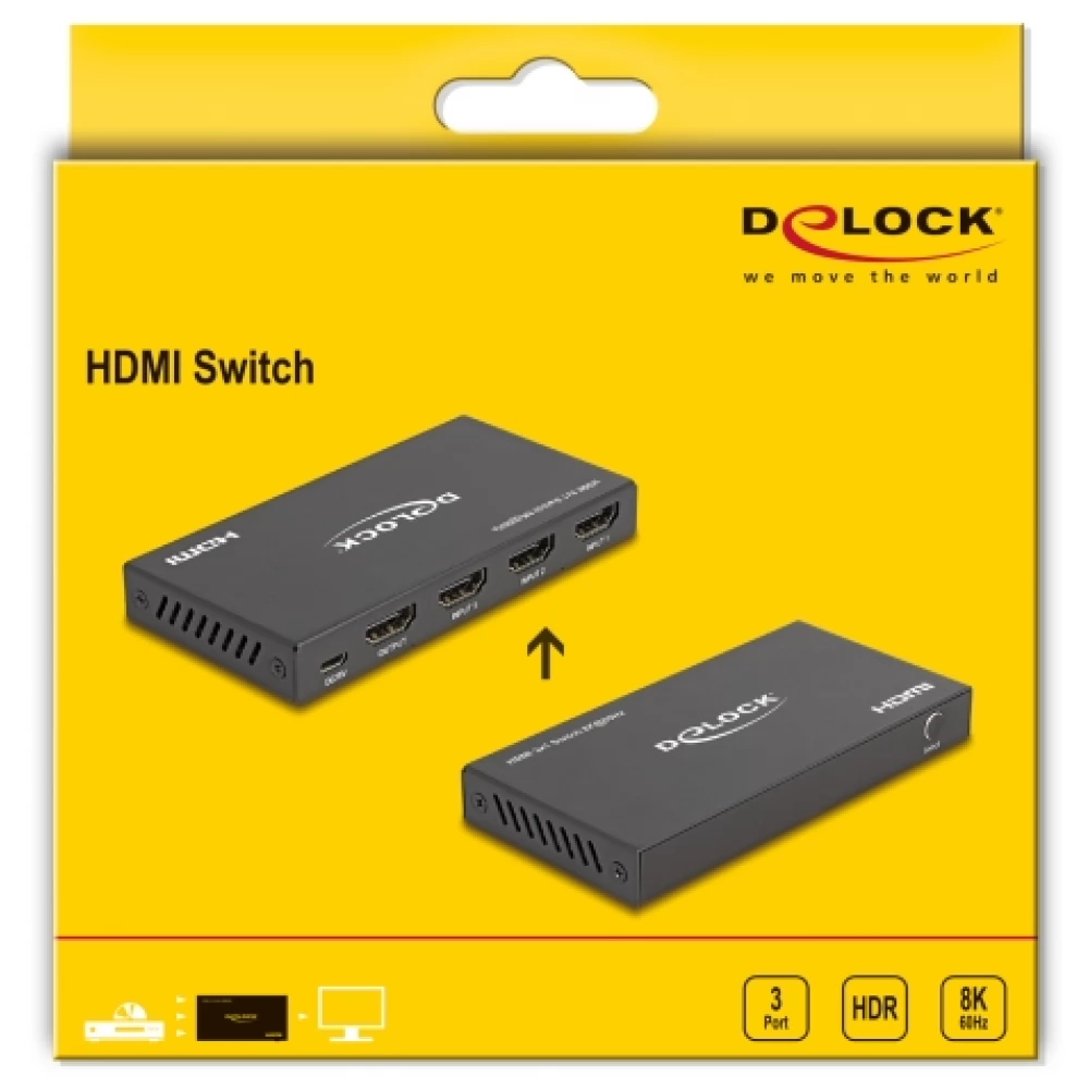 DELOCK HDMI kapcsoló 3 x HDMI bemenet - 1 x HDMI kimenet 8K 60 Hz - iPon.hu