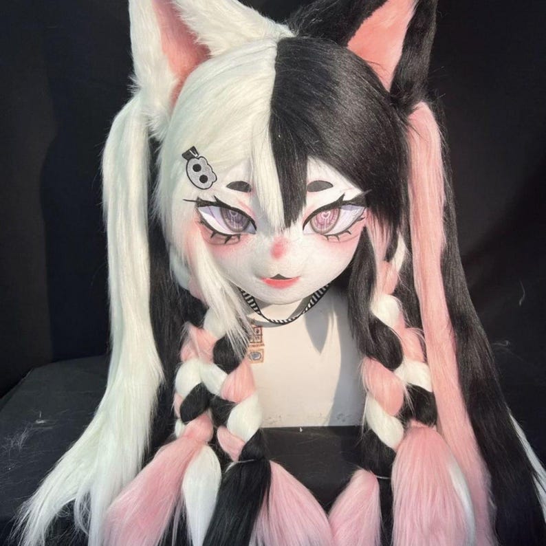 Custom Furry Mask With Black Hair for Girl,kig Fursona Head , Kig ...