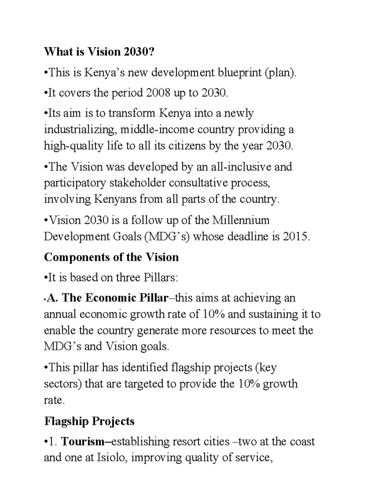 KENYA VISION 2030 NOTES.pdf - KENYA VISION 2030 Kenya Vision 2030 is ...