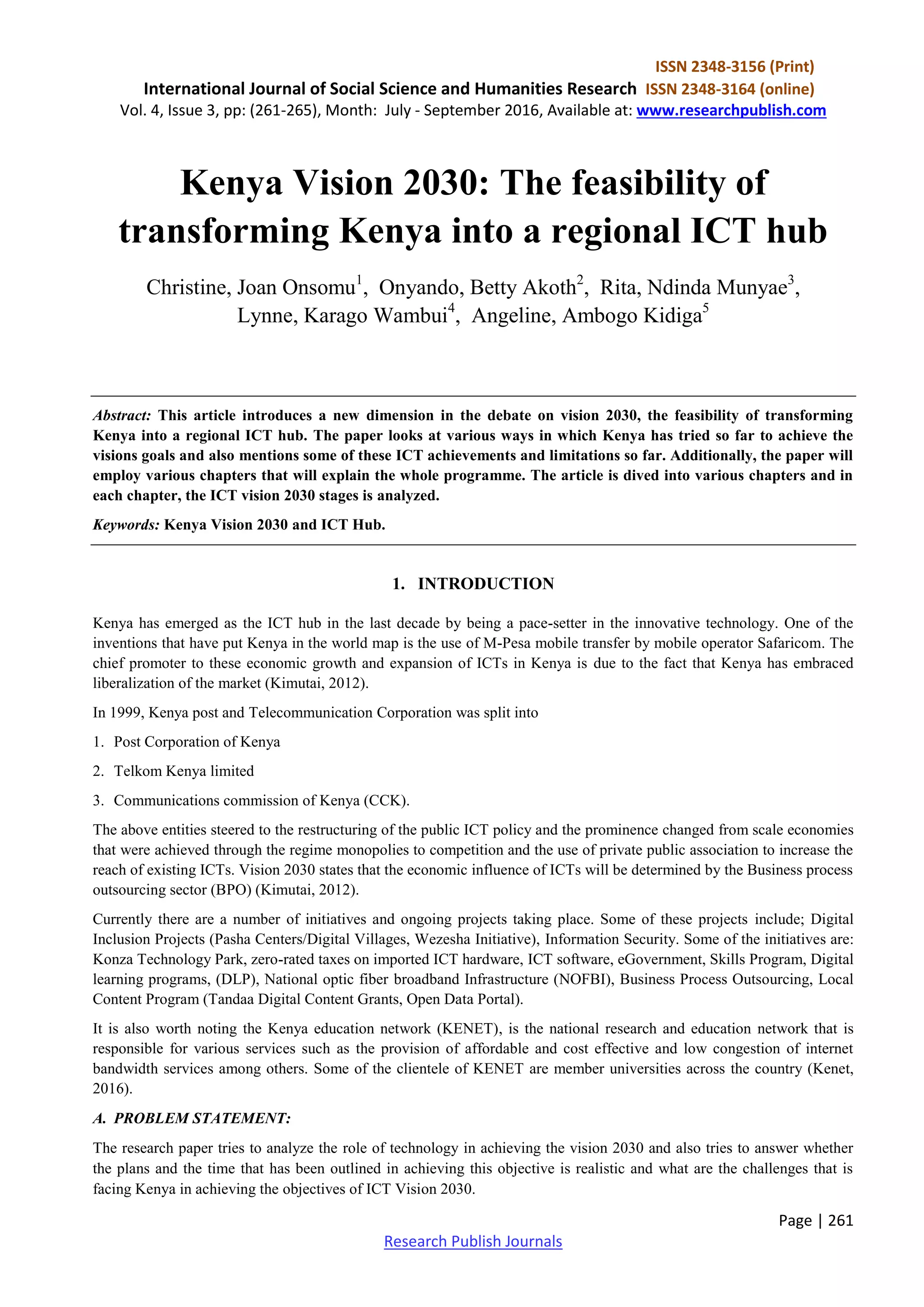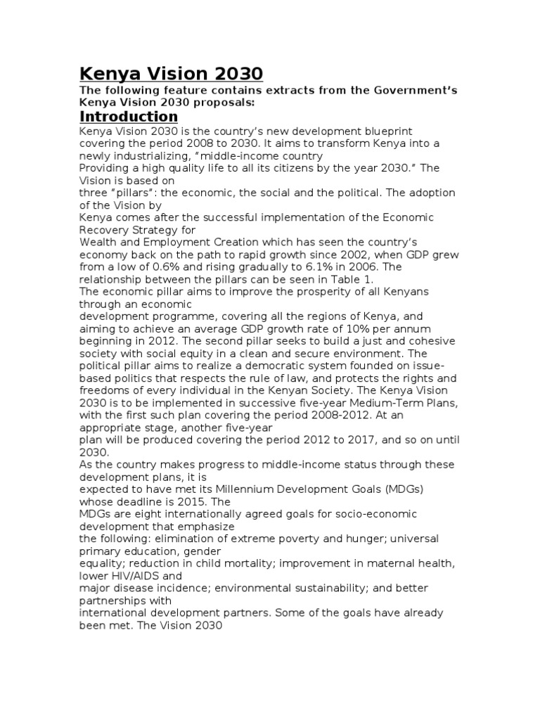 An Analysis Of Kenya Vision 2030’s Efforts Towards Achieving ...