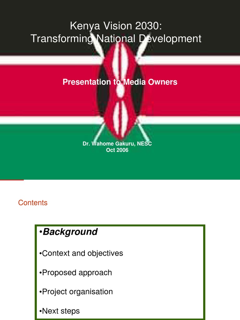 Kenya Vision 2030: Transforming National Development: Presentation To ...