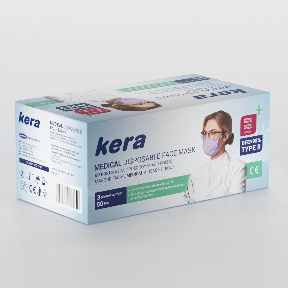 Μάσκες προσώπου kera medical μιας χρήσης 50 ΤΜΧ 3ply- Type II, ?98% BFE ...