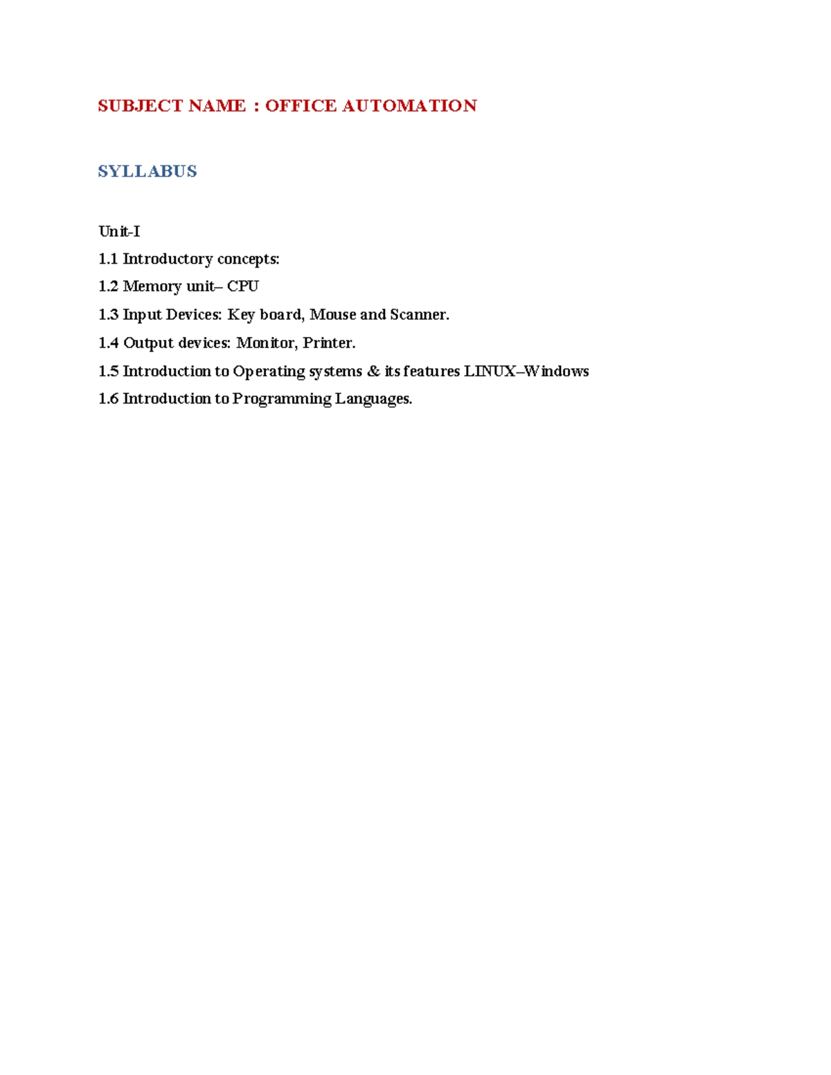Office Automation - Unit I Overview and Key Concepts - Studocu