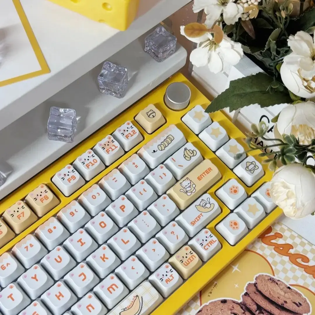 GEKUCAP MOA Profile PBT Keycaps,130 Keys Cute Cat Custom Keycaps 60 65 ...