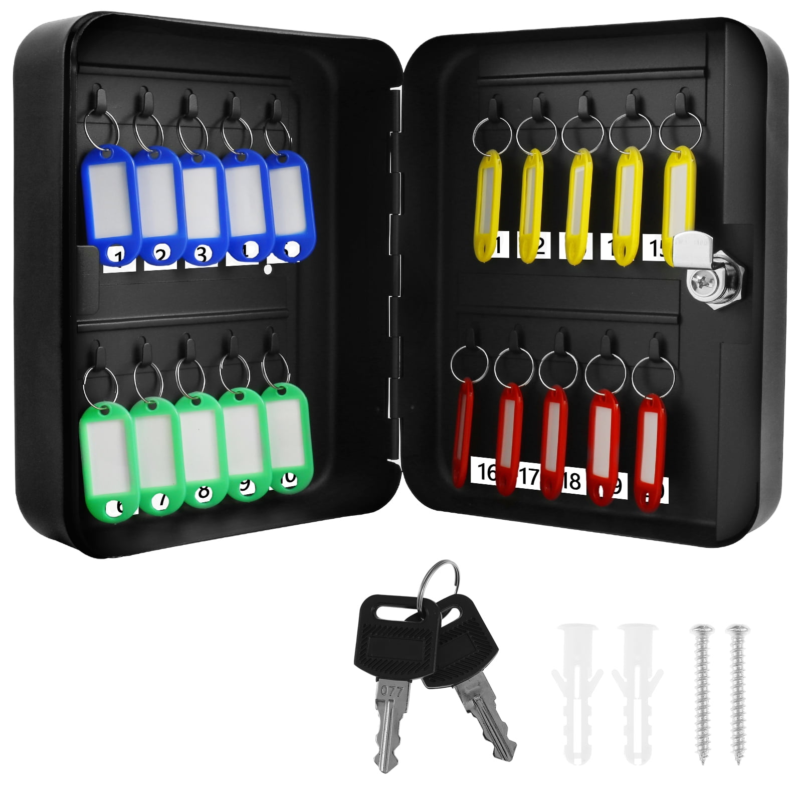 Key Storage Cabinet Lock Box Wall Mount with 20 Keys Capacity Black ...