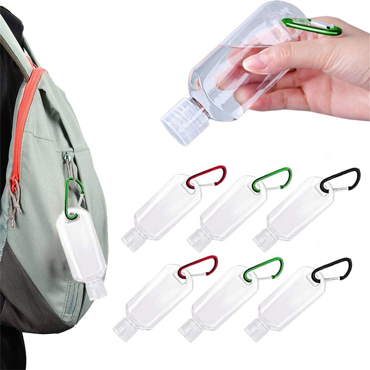 Amazon.co.jp: 6 Pcs Travel Bottle Keychain Holder Set Clear Refill ...