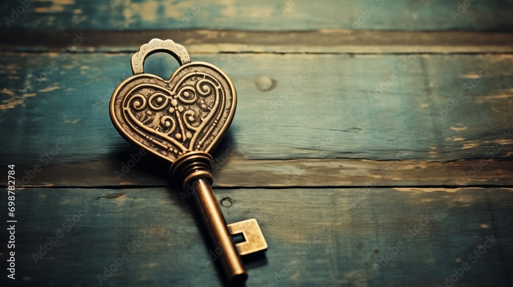 Foto de Heart-shaped key, a symbol of enduring love, ready to unlock ...