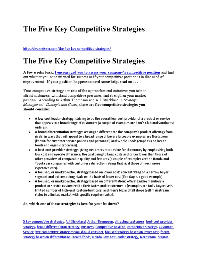 The Five Key Competitive Strategies | PDF | Cost Of Living ...