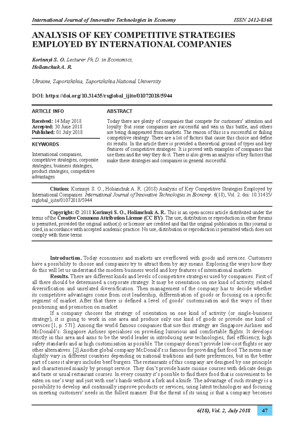 key competitive international business strategy - ANALYSIS OF KEY ...