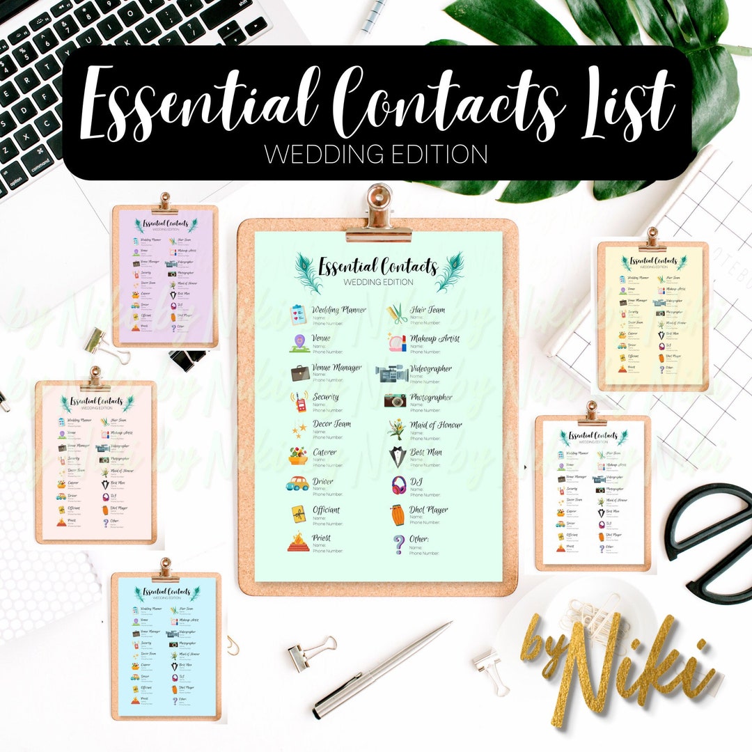 Essential Contacts List - Wedding Edition - Pastel Collection | Wedding ...