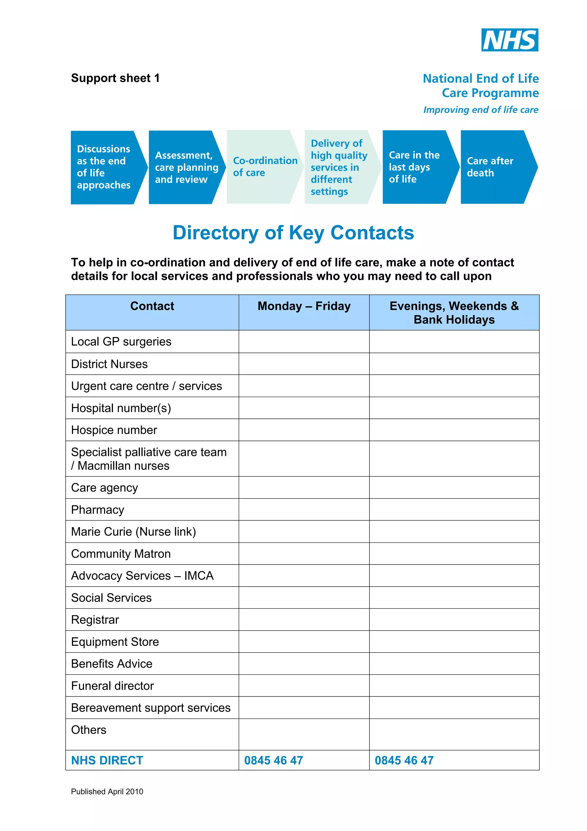 Support Sheet 1: Directory of Key Contacts | PDF