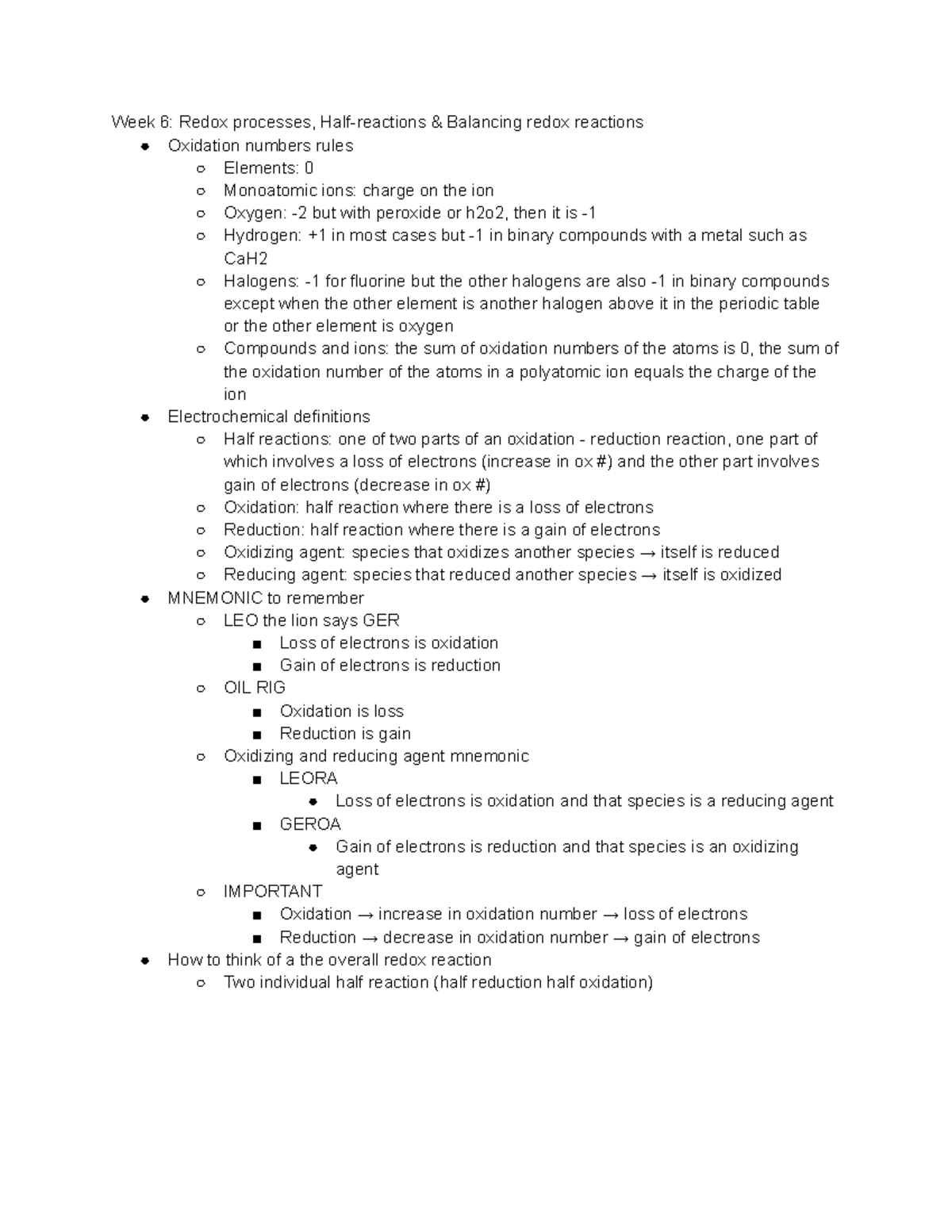 Chem1050 Midterm #2: Key Concepts on Redox Processes and ...