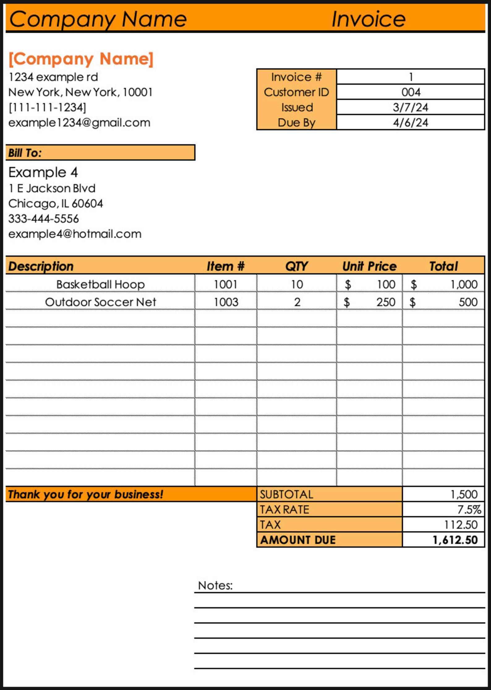 Free Invoice Examples Templates For Google Sheets And Microsoft Excel ...