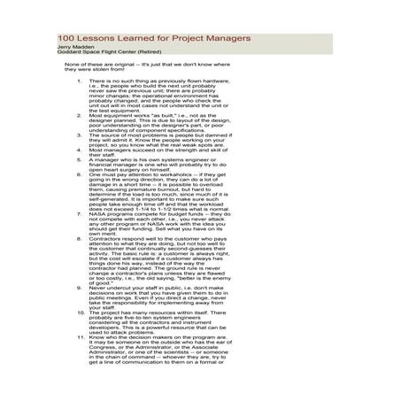 100 lessons learned for project managers | PDF